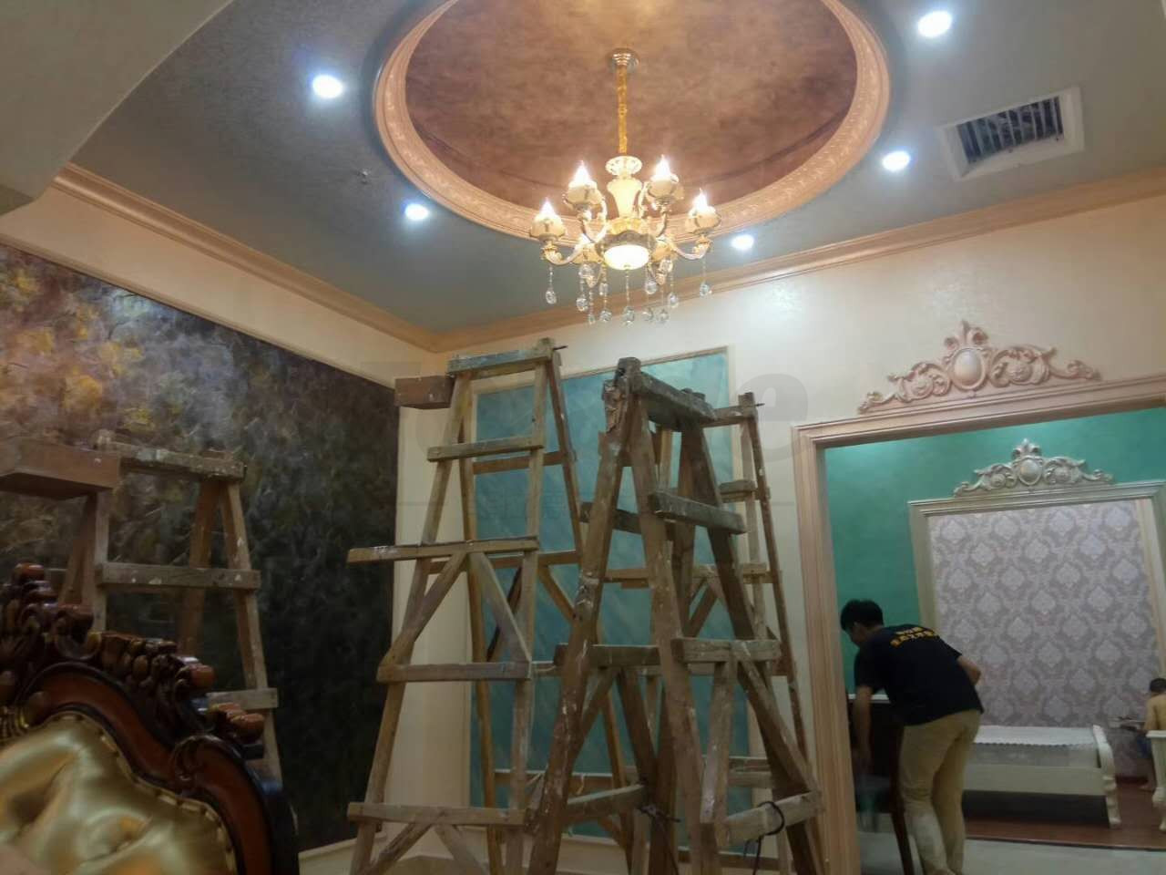顶使用石纹彩,背景使用塞巴斯汀,部分天花使用三色珠光
